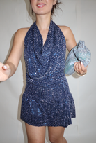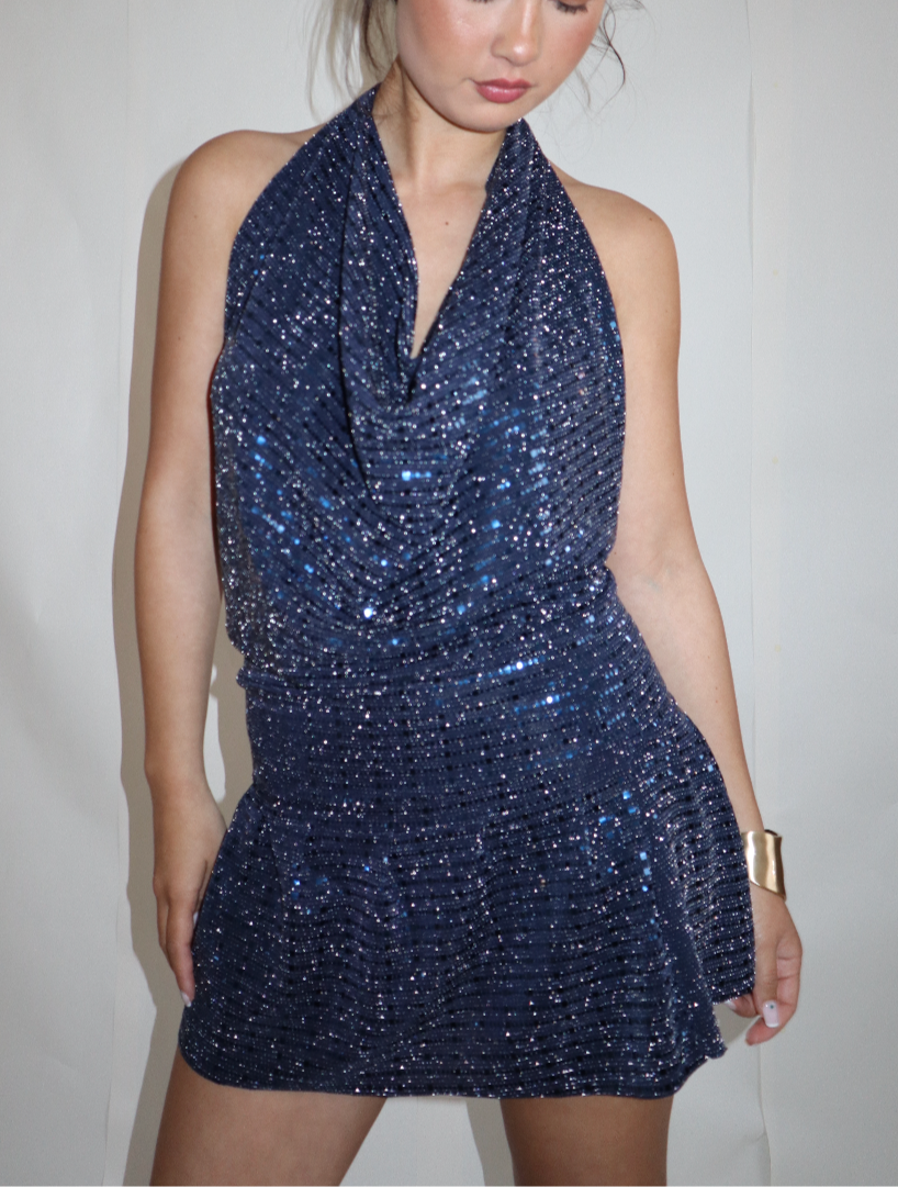 Introducing the RAY Set — a fluid, draped silhouette crafted from a shimmering, light-reflecting fabric.