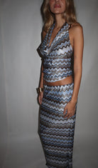 This stylish ensemble features a unique zigzag pattern crafted from a high-quality, stretchable polyester fabric infused with a hint of silver lurex for added shimmer. Designed to be worn as a coordinated set or as individual pieces, ISABELI offers both versatility and elegance, making it perfect for any occasion. Whether styled together or separately, this set combines comfort with a chic, modern look that stands out.